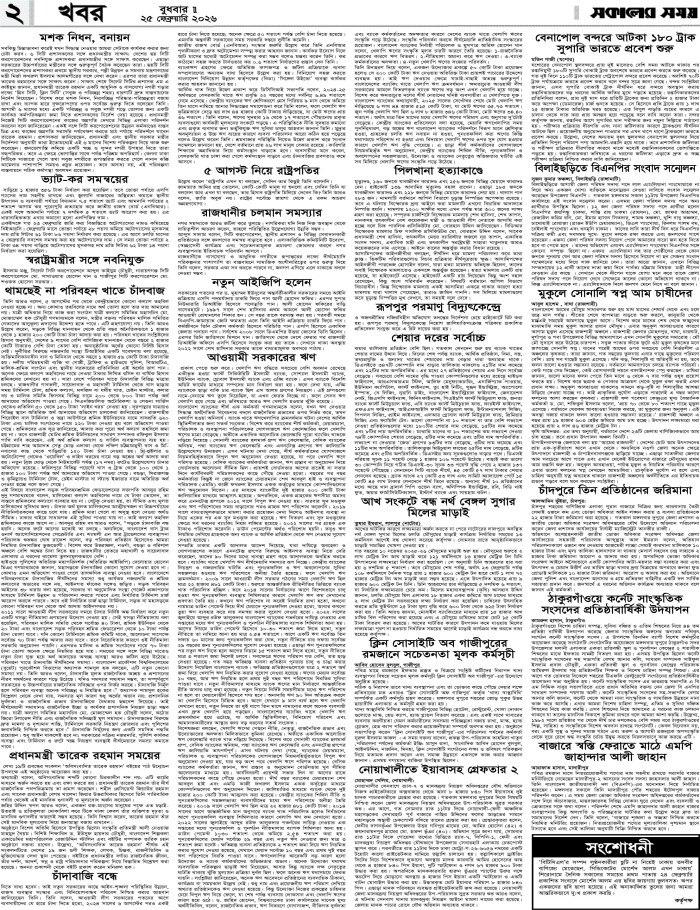 বুধবার, ২৫ ফেব্রুয়ারী ২০২৬